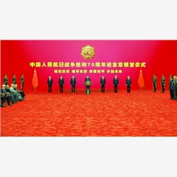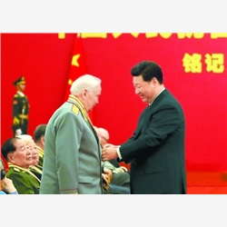 伟大胜利千秋颂,历史功勋向未来。中国人民抗日战争胜利70周年纪念章颁发仪式2日上午在北京人民大会堂隆重举行。中共中央总书记、国家主席、中央军委主席习近平向30名抗战老战士老同志、抗战将领、帮助和支持中国抗战的国际友人或其遗属代表颁发纪念章并发表重要讲话。习近平强调,实现我们的目标,需要英雄,需要英雄精神。我们要铭记一切为中华民族和中国人民作出贡献的英雄们,崇尚英雄,捍卫英雄,学习英雄,关爱英雄,戮力同心为实现“两个一百年”奋斗目标、实现中华民族伟大复兴的中国梦而努力奋斗。