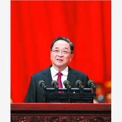 俞正声代表政协第十二届全国委员会常务委员会作工作报告。