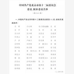 中国共产党北京市第十二届委员会委员、候补委员名单