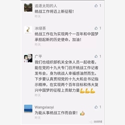 作为统战人,更令同言君振奋的是,在十九大期间,首次举行了“统一战线工作”记者招待会。而这,就发生在昨天(21日)。于是,从昨天到今天,同言君的朋友圈刷屏了,同言君的朋友的朋友圈刷屏了,“统战新语”后台留言也刷屏了——
