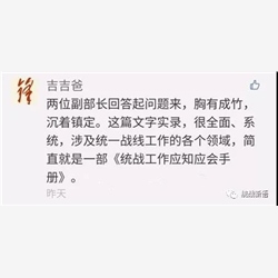 据新华社报道,昨天240多名中外记者参加了记者招待会。在这场记者招待会上,发布人中共中央统战部常务副部长张裔炯、冉万祥共回答了中外记者7个问题,涉及统一战线基础领域以及多党合作、非公有制经济、民族、宗教、海外统战工作等方面,用一位网友的评价就是:问得漂亮!答得精彩!一位媒体人告诉同言君,记者会后,对统一战线有了“新的理解”,对中央统战部“有了新的认识“,这就是一堂生动的统一战线科普课!