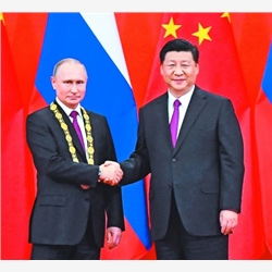 6月8日,中华人民共和国“友谊勋章”颁授仪式在北京人民大会堂金色大厅隆重举行。国家主席习近平向俄罗斯总统普京授予首枚“友谊勋章”。