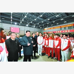 随后,习近平来到国家冬季运动训练中心,在短道速滑馆结合展板听取速滑、花滑项目介绍,之后进入馆内察看国家速滑队、花滑队训练备战情况。看到运动员们在冰面上挥洒汗水、刻苦备战,习近平表示赞许,叮嘱他们科学训练、注意安全。习近平步行前往冰壶馆,察看国家冰壶队训练备战情况。运动员、教练员看到习近平来了,争相围拢过来。习近平勉励他们注重选拔培养好人才,增强为国争光的荣誉感,坚定创造佳绩的信心,刻苦训练、全力备战、勇攀高峰,力争实现新的突破。冰壶馆前厅的沙盘,展示了首钢北区和冬奥会滑雪大跳台规划建设情况,习近平边看边问。他强调,体育强则国家强,国家强则体育强。发展体育事业不仅是实现中国梦的重要内容,还能为中华民族伟大复兴提供凝心聚气的强大精神力量。我们要弘扬中华体育精神,弘扬体育道德风尚,推动群众体育、竞技体育、体育产业协调发展,加快建设体育强国。考察结束时,习近平同运动员、教练员和工作人员代表等握手告别,现场响起热烈的掌声。