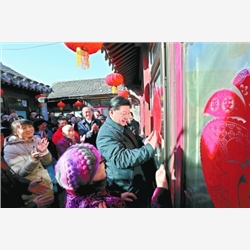 草厂胡同过去居住条件比较差,如今经过改造后,居住环境大为改善,体现了“老北京新气象,老胡同新生活”。习近平先后走进两个居民院落,了解老城区改造后居民住房条件改善情况。看到总书记到来,大家都很激动,纷纷向总书记问好。习近平仔细询问他们日子过得怎么样、冬天用什么取暖、每个月的电费要多少、年货备齐没有,祝愿他们生活幸福。居民侯雅明现场写下一副春联,给总书记拜年。习近平高兴地拿起一幅“福”字,亲自贴到门上,给这里的老街坊们拜年。习近平表示,中国共产党的追求就是让老百姓生活越来越好。在朱茂锦家,习近平同他们一家人包饺子、炸饹馇、聊家常。大家告诉总书记,这些年,老城区改造后居住条件和生活环境大为改善,大家衷心感谢共产党。习近平强调,党中央十分关心老城区和棚户区改造,就是要让大家居住更舒适、生活更美好,解决好大家关心的实际问题,让大家住在胡同里也能过上现代生活。