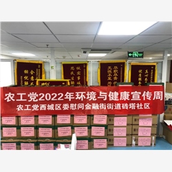 “环境与健康宣传周”期间,农工党西城区委向结对共建广外街道、金融街街道砖塔社区捐赠200份端午节慰问品,向展览路街道团结社区捐赠2000个口罩和30箱矿泉水,慰问社区一线防疫人员,助力首都疫情防控工作。