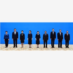 (新一届民建北京市委领导班子成员合影。左起:王虹、郭田勇、李莉、李申虹、司马红、黄石松、安庭、苏宏、苏健)