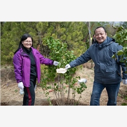 田庆奇和民盟昌平区工委主委李继清一起种植了一株紫丁香并共同为其挂牌。