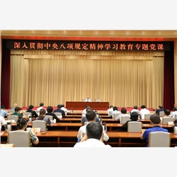 7月21日,市委常委、统战部部长马骏为全市统战系统讲授深入贯彻中央八项规定精神学习教育专题党课。市委统战部分管日常工作的副部长周开让主持会议。