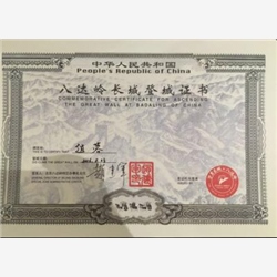 图为:贵州石门乡青少年荣获的八达岭长城登城证书