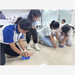8岁以上的孩子,通过适当的学习就能具备救人的能力,所以让孩子们学习专业、系统的急救技能很有必要。“胸外按压要按得足够深,按得足够快”“快来,快来,到你了!按压中断不能超过10秒。” 课程中孩子们一边学习知识,一边认真练习。