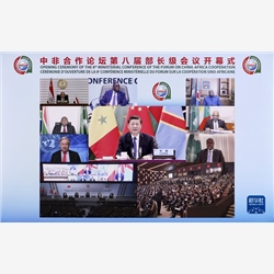 11月29日晚,国家主席习近平在北京以视频方式出席中非合作论坛第八届部长级会议开幕式并发表题为《同舟共济,继往开来,携手构建新时代中非命运共同体》的主旨演讲。新华社记者 刘彬 摄