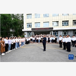 7月12日至15日,中共中央总书记、国家主席、中央军委主席习近平在新疆考察。这是12日下午,习近平在乌鲁木齐国际陆港区,同工作人员及现场办事人员亲切交流。新华社记者 谢环驰 摄