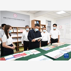 7月12日至15日,中共中央总书记、国家主席、中央军委主席习近平在新疆考察。这是12日下午,习近平在新疆大学参观校史馆。新华社记者 李学仁 摄