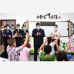 7月12日至15日,中共中央总书记、国家主席、中央军委主席习近平在新疆考察。这是13日上午,习近平在乌鲁木齐市天山区固原巷社区少儿阅览室,观看儿童中华优秀传统文化知识表演。新华社记者 燕雁 摄