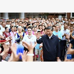 离开社区时,身着民族服装的各族群众载歌载舞,向总书记表达由衷的爱戴。习近平祝福大家事业欣欣向荣、生活越来越幸福。