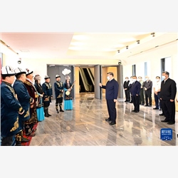 随后,习近平来到新疆维吾尔自治区博物馆,参观《新疆历史文物展》,观看民族史诗《玛纳斯》说唱展示,并同《玛纳斯》非物质文化遗产传承人亲切交谈。习近平指出,中华文明博大精深、源远流长,是由各民族优秀文化百川汇流而成。要加强中华民族共同体历史、中华民族多元一体格局的研究,充分挖掘和有效运用新疆各民族交往的历史事实、考古实物、文化遗存,讲清楚新疆自古以来就是我国不可分割的一部分和多民族聚居地区,新疆各民族是中华民族大家庭血脉相连、命运与共的重要成员。要加强非物质文化遗产保护传承,把各民族优秀传统文化发扬光大。