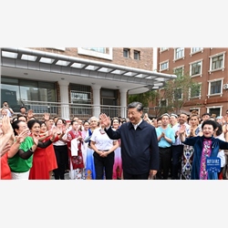 7月12日至15日,中共中央总书记、国家主席、中央军委主席习近平在新疆考察。这是13日上午,习近平在乌鲁木齐市天山区固原巷社区考察时,同各族群众亲切交流。新华社记者 谢环驰 摄