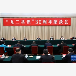 新华社北京7月26日电 “九二共识”30周年座谈会26日在人民大会堂举行。中共中央政治局常委、全国政协主席汪洋出席并讲话。他强调,推动两岸关系和平发展、推进祖国和平统一进程,是全体中华儿女的共同愿望,是中国共产党解决台湾问题的基本主张。要坚持以习近平新时代中国特色社会主义思想为指导,贯彻落实新时代党解决台湾问题的总体方略,广泛团结海内外中华儿女,坚持一个中国原则和“九二共识”,共创祖国统一的历史伟业,共享民族复兴的伟大荣光。