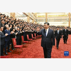 上午10时30分,习近平等来到人民大会堂金色大厅,全场响起长时间的热烈掌声。习近平等向代表们挥手致意,同大家亲切交流并合影留念。