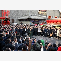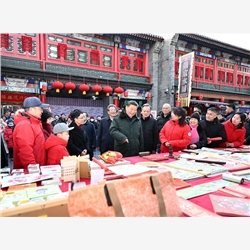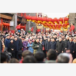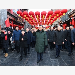 当天下午,习近平来到天津古文化街。街道古色古香,习近平沿街步行,先后走进桂发祥十八街麻花、果仁张、泥人张、杨柳青年画等特色店铺,了解产品种类、销售和传统文化传承发展等情况,同店铺业主、员工和现场群众互动交流。他说,各级党委和政府要加强节日期间民生商品的产销保供,确保数量充足、品类丰富、质量可靠,让广大群众放心消费、快乐过年。习近平指出,中国式现代化离不开优秀传统文化的继承和弘扬,天津是一座很有特色和韵味的城市,要保护和利用好历史文化街区,使其在现代化大都市建设中绽放异彩。