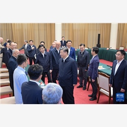 5月23日下午,中共中央总书记、国家主席、中央军委主席习近平在山东省济南市主持召开企业和专家座谈会并发表重要讲话。这是习近平同参会的企业和专家代表亲切交流。新华社记者 李涛 摄