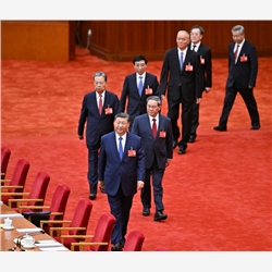 这是习近平、李强、赵乐际、王沪宁、蔡奇、丁薛祥、李希等步入会场。