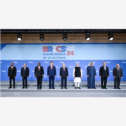 当地时间10月23日上午,金砖国家领导人第十六次会晤在喀山会展中心举行。俄罗斯总统普京主持会晤。中国国家主席习近平、巴西总统卢拉(线上)、埃及总统塞西、埃塞俄比亚总理阿比、印度总理莫迪、伊朗总统佩泽希齐扬、南非总统拉马福萨、阿联酋总统穆罕默德等出席。