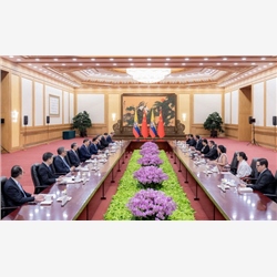 6月27日上午,国家主席习近平在北京人民大会堂会见来华出席夏季达沃斯论坛的厄瓜多尔总统诺沃亚。